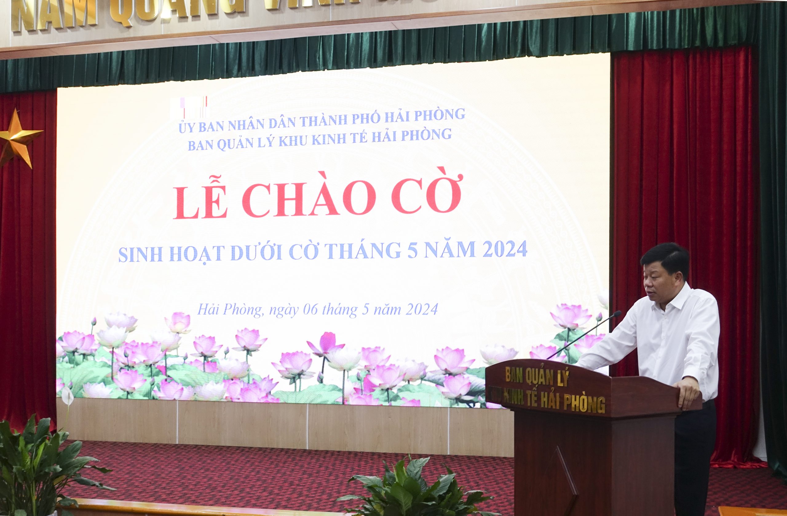 Sáng 6/5/2024 tại hội trường Ban Quản lý Khu kinh tế Hải Phòng diễn ra lễ chào cờ và sinh hoạt dưới cờ tháng 5/2024.