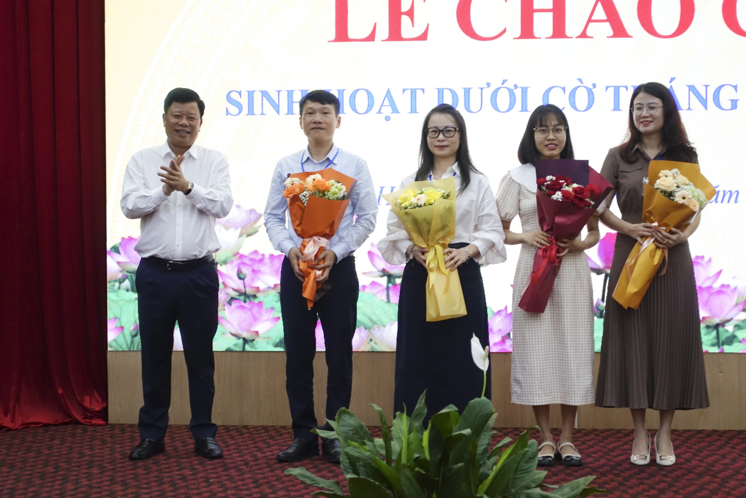 Kết thúc buổi lễ Lãnh đạo Ban tặng hoa chúc mừng các đồng chí CBCNV của Ban sinh nhật trong tháng Năm