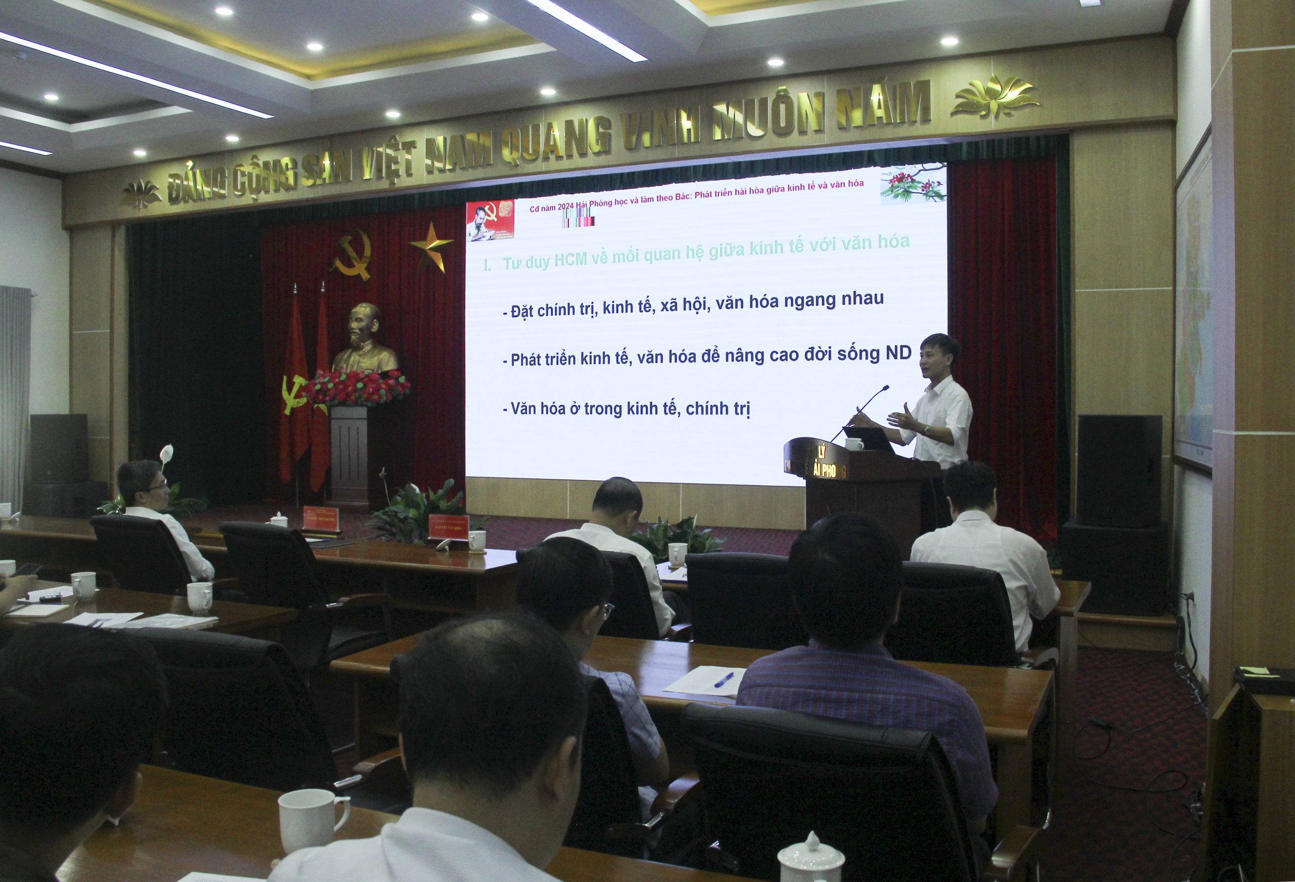 Các đại biểu cũng được nghe đồng chí Nguyễn Văn Hiểu, Phó Trưởng Ban Tuyên giáo Thành ủy hướng dẫn nghiên cứu “học tâp và làm theo tư tưởng, đạo đức, phong cách Hồ Chí Minh” chuyên đề năm 2024 “Xây dựng, phát triển Hải Phòng phải hài hòa giữa phát triển kinh tế và phát triển văn hóa”; thông tin tình hình thời sự trong nước, quốc tế.