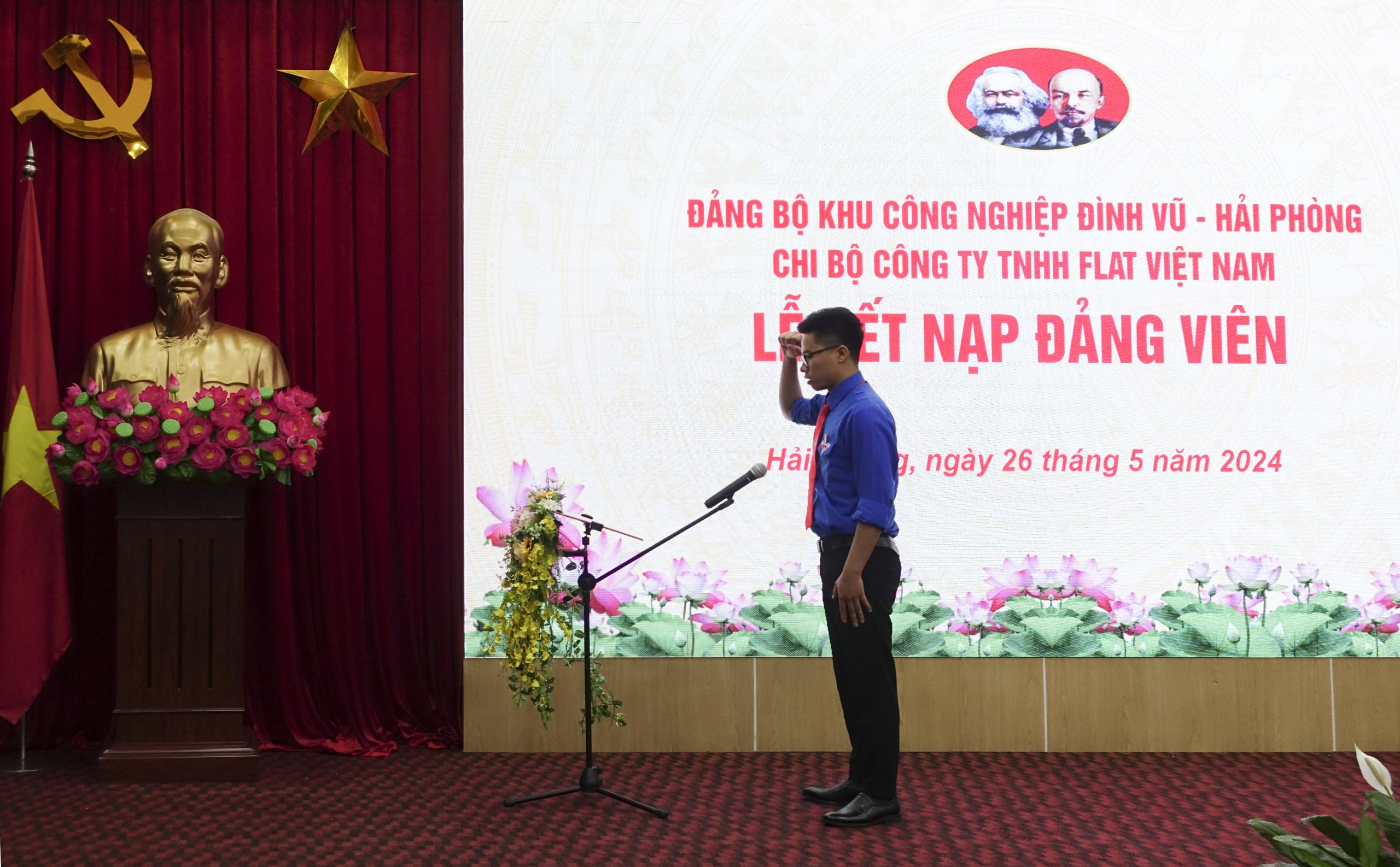 Tại chương trình, ban tổ chức đã công bố quyết định kết nạp đảng viên cho 2 quần chúng ưu tú công tác tại Công ty TNHH Flat Việt Nam gồm: đồng chí Lê Quang Hiếu (28 tuổi, quê quán TT. Minh Đức, H.Thủy Nguyên, TP. Hải Phòng) và đồng chí Phạm Thị Thành (35 tuổi, quê quán xã Quang Phục, H. Tiên Lãng, TP. Hải Phòng).