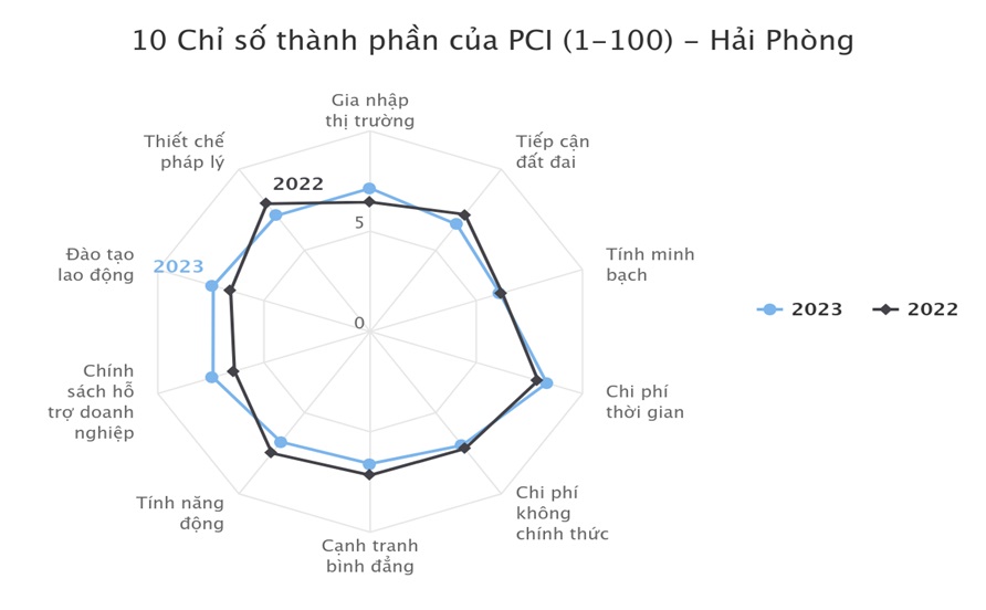 Hồ sơ chỉ số năng lực cạnh tranh cấp tỉnh (PCI) năm 2022 và năm 2023 của Hải Phòng. Nguồn: VCCI