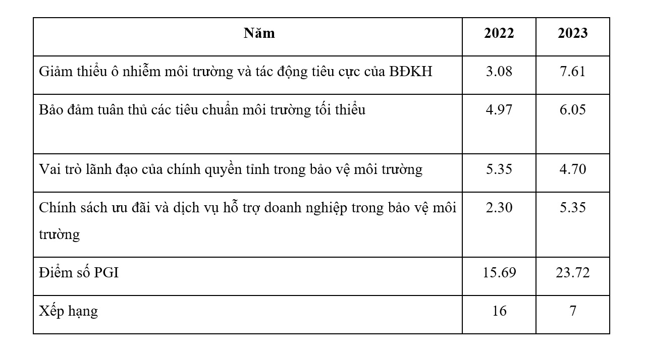 Hồ sơ chỉ số xanh cấp tỉnh (PGI) năm 2022 và năm 2023 của Hải Phòng.Nguồn: VCCI