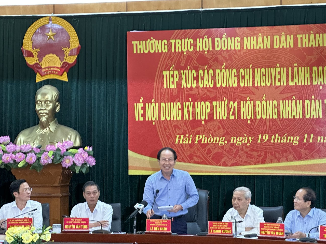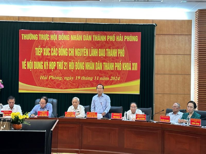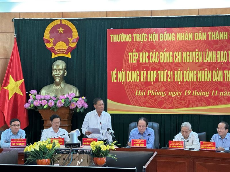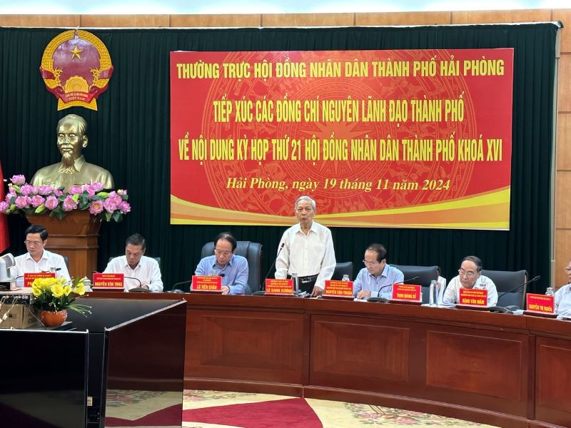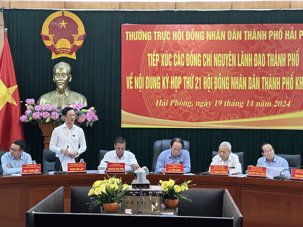 Đại diện Thường trực HĐND thành phố báo cáo các đồng chí nguyên lãnh đạo thành phố nội dung chủ yếu của kỳ họp thứ 21, HĐND thành phố khóa 16. Theo đó, tại kỳ họp này, HĐND thành phố xem xét, quyết định hơn 32 nghị quyết; xem xét 26 báo cáo trên các lĩnh vực liên quan tới phát triển KTXH thành phố và một số đề án liên quan tới phát triển Trường Đại học Hải Phòng; mức thu nộp tiền thuê nhà chung cư; thưởng vận động viên có thành tích cao…
