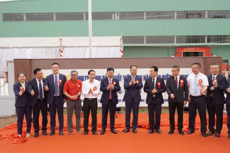 Các đại biểu thực hiện nghi lễ khánh thành nhà máy