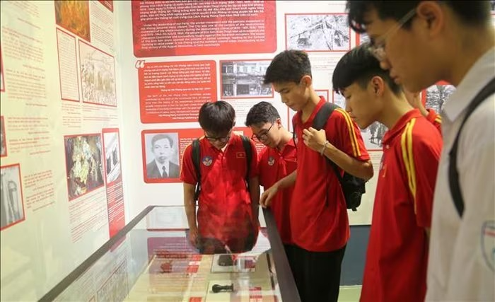 Học sinh xem các hiện vật trưng bày tại Bảo tàng Hải Phòng. (sưu tầm)