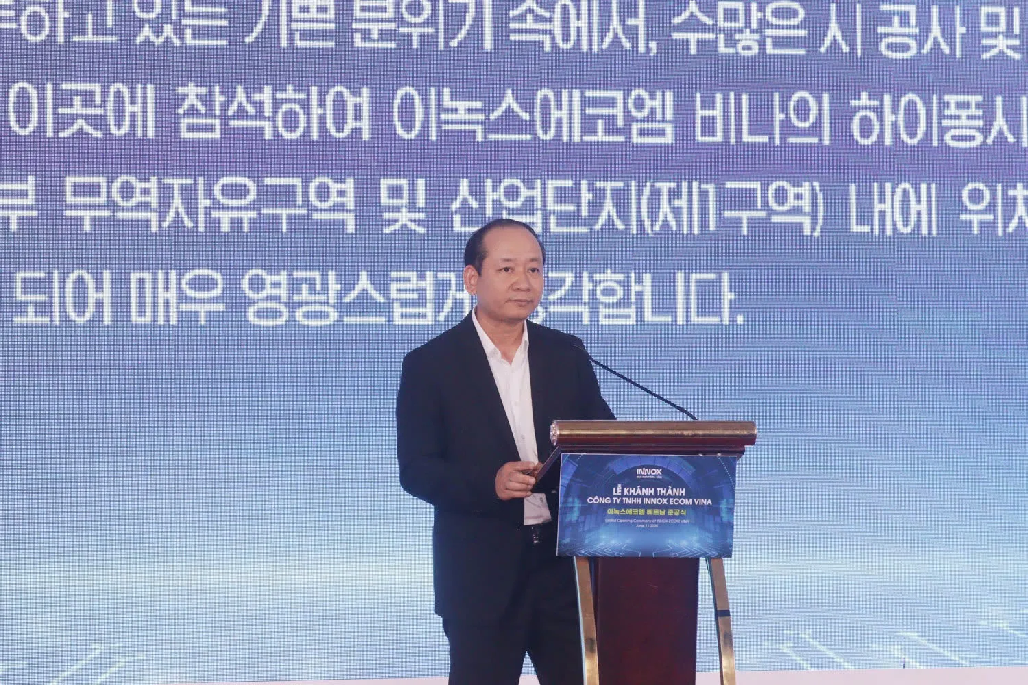 Chiều ngày 11/6/2025, Công ty TNHH Innox Ecom Vina (Hàn Quốc) đã tổ chức Lễ khánh thành Dự án sản xuất SiO tại Việt Nam. Dự án được đặt tại Khu phi thuế quan và Khu công nghiệp Nam Đình Vũ (Khu 1), thuộc Khu kinh tế Đình Vũ – Cát Hải, phường Đông Hải 2, quận Hải An, thành phố Hải Phòng. Tham dự buổi lễ có đồng chí Nguyễn Quang Minh – Phó Trưởng Ban Quản lý Khu kinh tế Hải Phòng cùng đại diện các sở, ngành, doanh nghiệp và đối tác liên quan.
