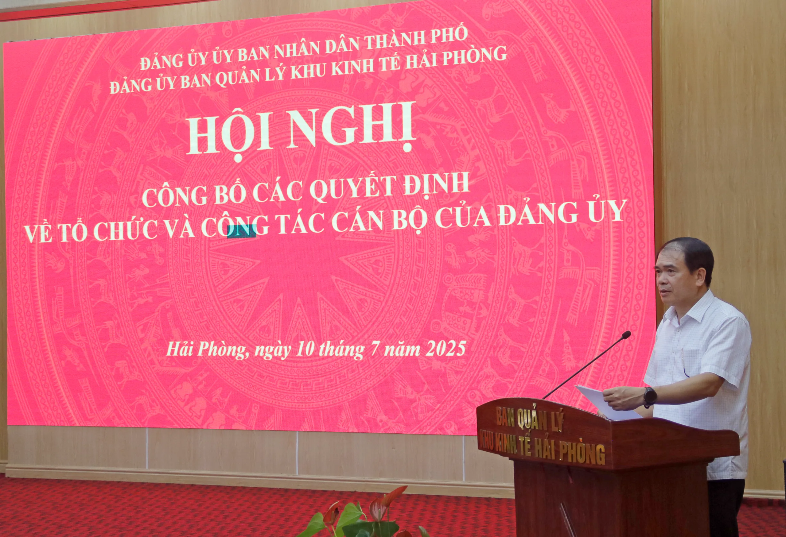 Chỉ định Ban Chấp hành Đảng bộ gồm 18 đồng chí, Ban Thường vụ gồm 5 đồng chí; đồng chí Lê Trung Kiên, Uỷ viên Ban Thường vụ Thành ủy, Trưởng Ban Quản lý Khu kinh tế Hải Phòng là Bí thư Đảng ủy; đồng chí Dương Văn Xuyên, Uỷ viên Thành ủy, Phó Trưởng Ban Quản lý Khu kinh tế Hải Phòng là Phó Bí thư Đảng ủy, nhiệm kỳ 2025 – 2030.