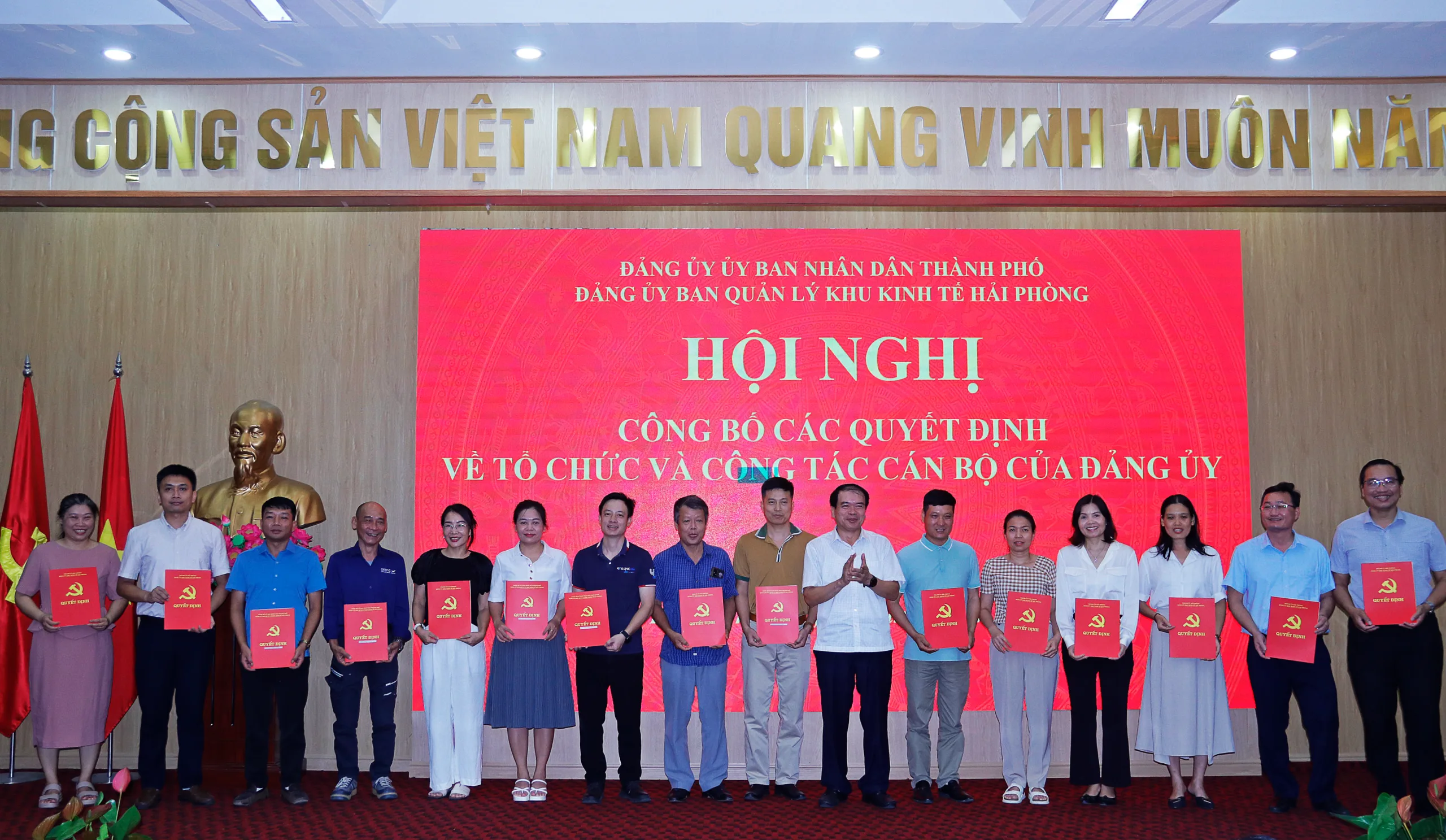 Ngày 08/7/2025, Ban Thường vụ Đảng ủy Ban Quản lý Khu kinh tế Hải Phòng đã họp thống nhất chủ trương và ban hành 96 quyết định thành lập tổ chức đảng, gồm có 05 quyết định thành lập 05 Đảng bộ bộ phận, 50 quyết định thành lập chi bộ trực thuộc Đảng bộ Ban Quản lý và 41 quyết định thành lập chi bộ trực thuộc các đảng bộ bộ phận.