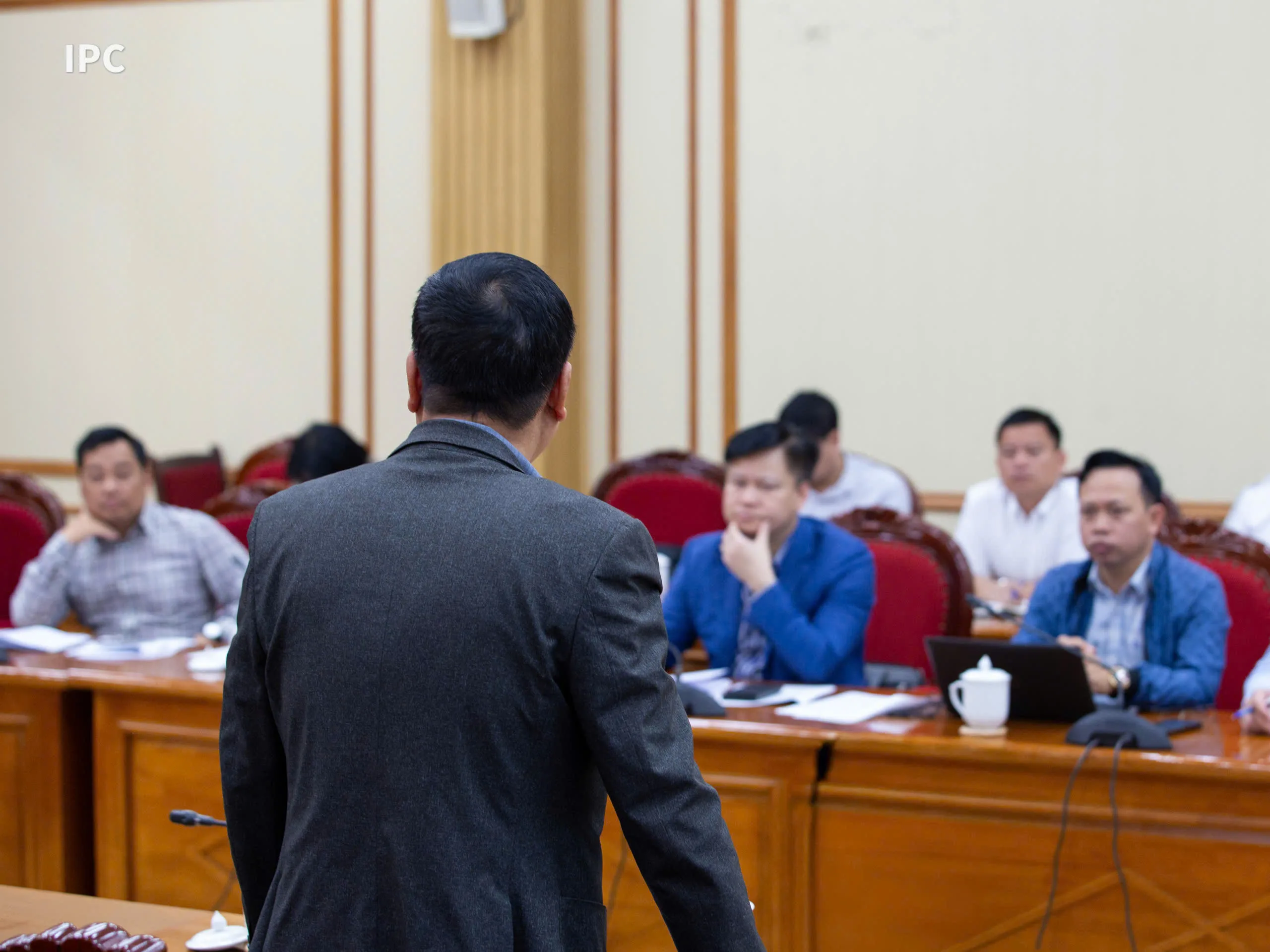 Đại diện chủ đầu tư các doanh nghiệp kinh doanh hạ tầng KCN báo cáo tình hình và trình bày những điểm vướng mắc trong việc triển khai phủ sóng trong hạ tầng mạng