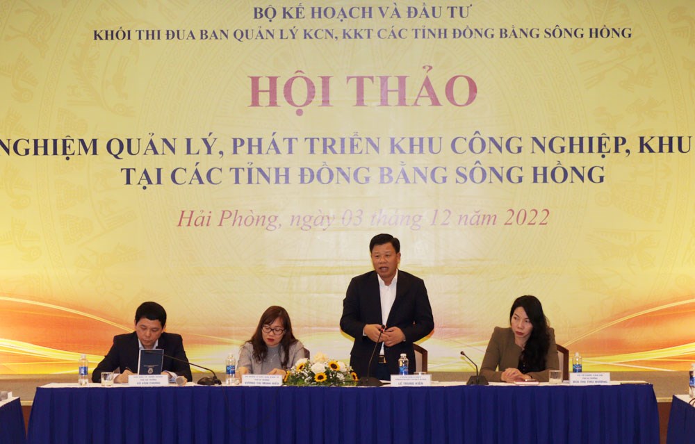 gày 3/12, Ban Quản lý Khu Kinh tế Hải Phòng đăng cai tổ chức Hội thảo “Kinh nghiệm quản lý, phát triển Khu công nghiệp, Khu kinh tế tại các tỉnh Đồng bằng sông Hồng”. Đồng chí Lê Trung Kiên, Ủy viên Ban Thường vụ Thành ủy, Trưởng Ban Quản lý Khu kinh tế Hải Phòng chủ trì Hội thảo. Dự Hội thảo có đại diện lãnh đạo Bộ Kế hoạch và Đầu tư, Cục Đầu tư nước ngoài, Vụ Quản lý các Khu kinh tế, Vụ Tổ chức Cán bộ – Bộ Kế hoạch và Đầu tư; lãnh đạo Ban Quản lý Khu công nghiệp, Khu kinh tế của 11 tỉnh Đồng bằng Sông Hồng: Hà Nội, Hải Phòng, Quảng Ninh, Vĩnh Phúc, Hà Nam, Hải Dương, Hưng Yên, Ninh Bình, Thái Bình, Bắc Ninh, Nam Định.