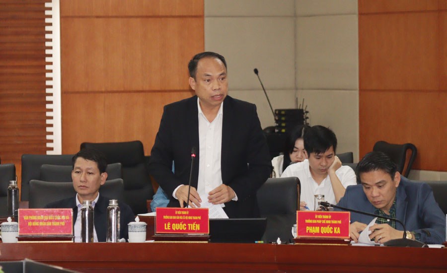 Trưởng Ban Văn hóa – Xã hội HĐND thành phố báo cáo về nhiệm vụ Chuyển đổi số tại Hội nghị.