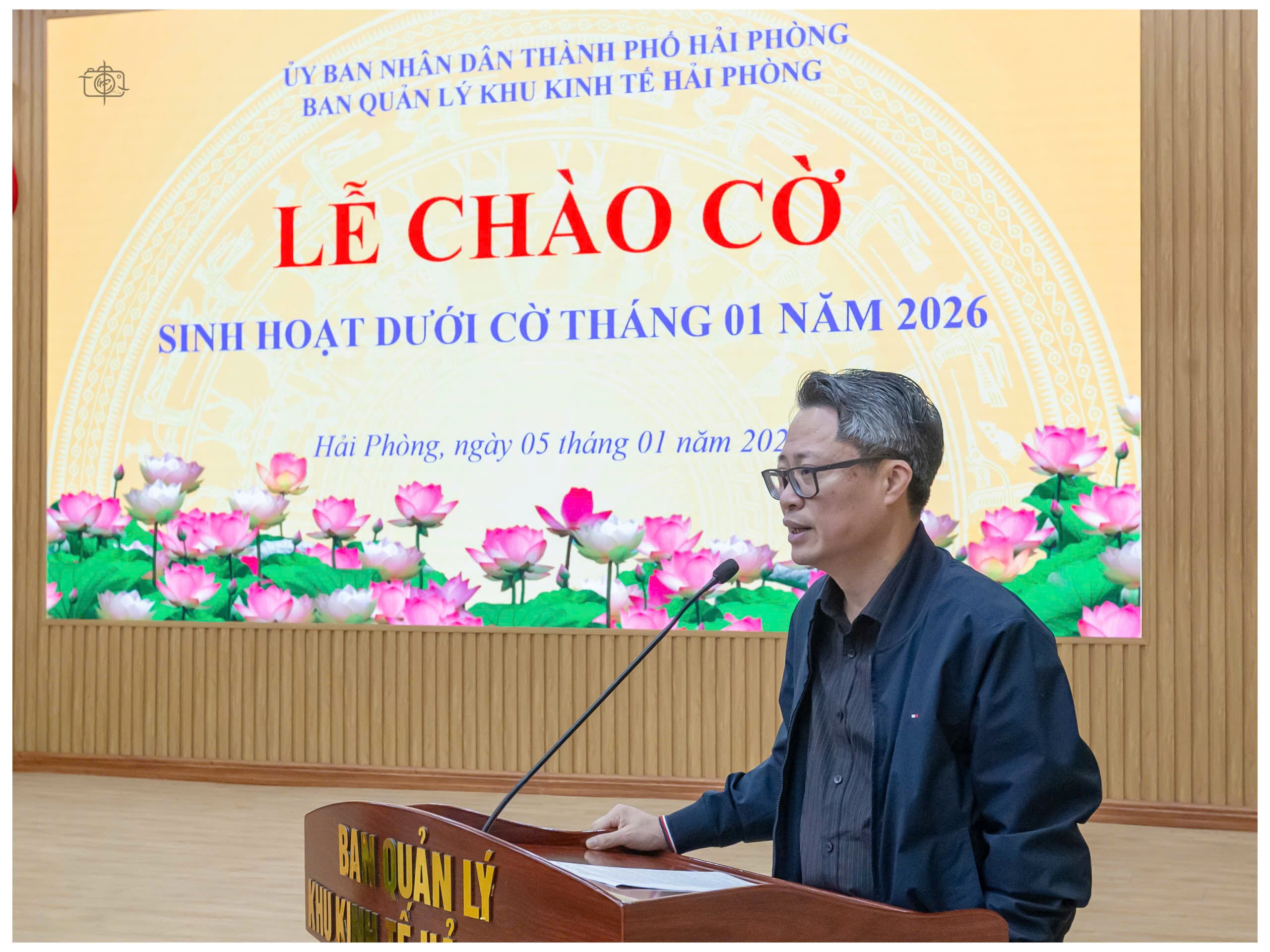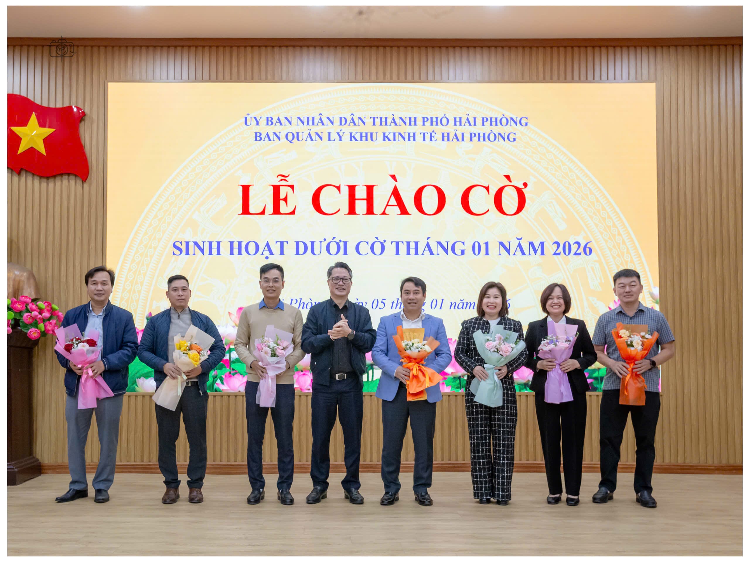 Buổi sinh hoạt dưới cờ tháng 01 năm 2026 diễn ra trang trọng, ý nghĩa, góp phần tạo khí thế thi đua sôi nổi, củng cố tinh thần đoàn kết và nâng cao ý thức trách nhiệm trong toàn thể cán bộ, công chức, viên chức và người lao động Ban Quản lý Khu kinh tế Hải Phòng.