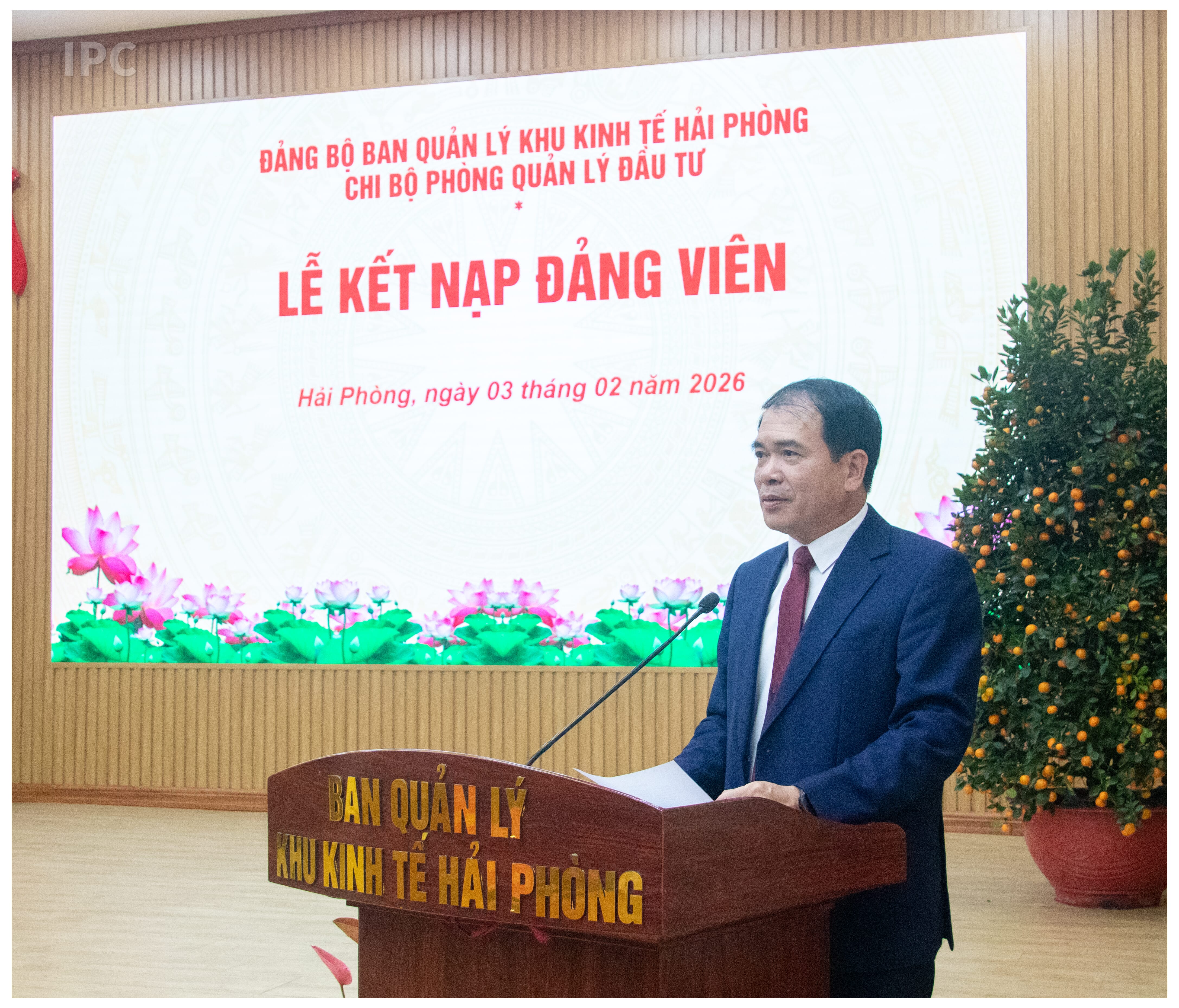 Tại buổi Lễ, Ban Tổ chức đã công bố Quyết định của Đảng ủy Ban Quản lý Khu kinh tế Hải Phòng về việc kết nạp 03 quần chúng ưu tú thuộc các Chi bộ phòng chuyên môn vào Đảng Cộng sản Việt Nam.