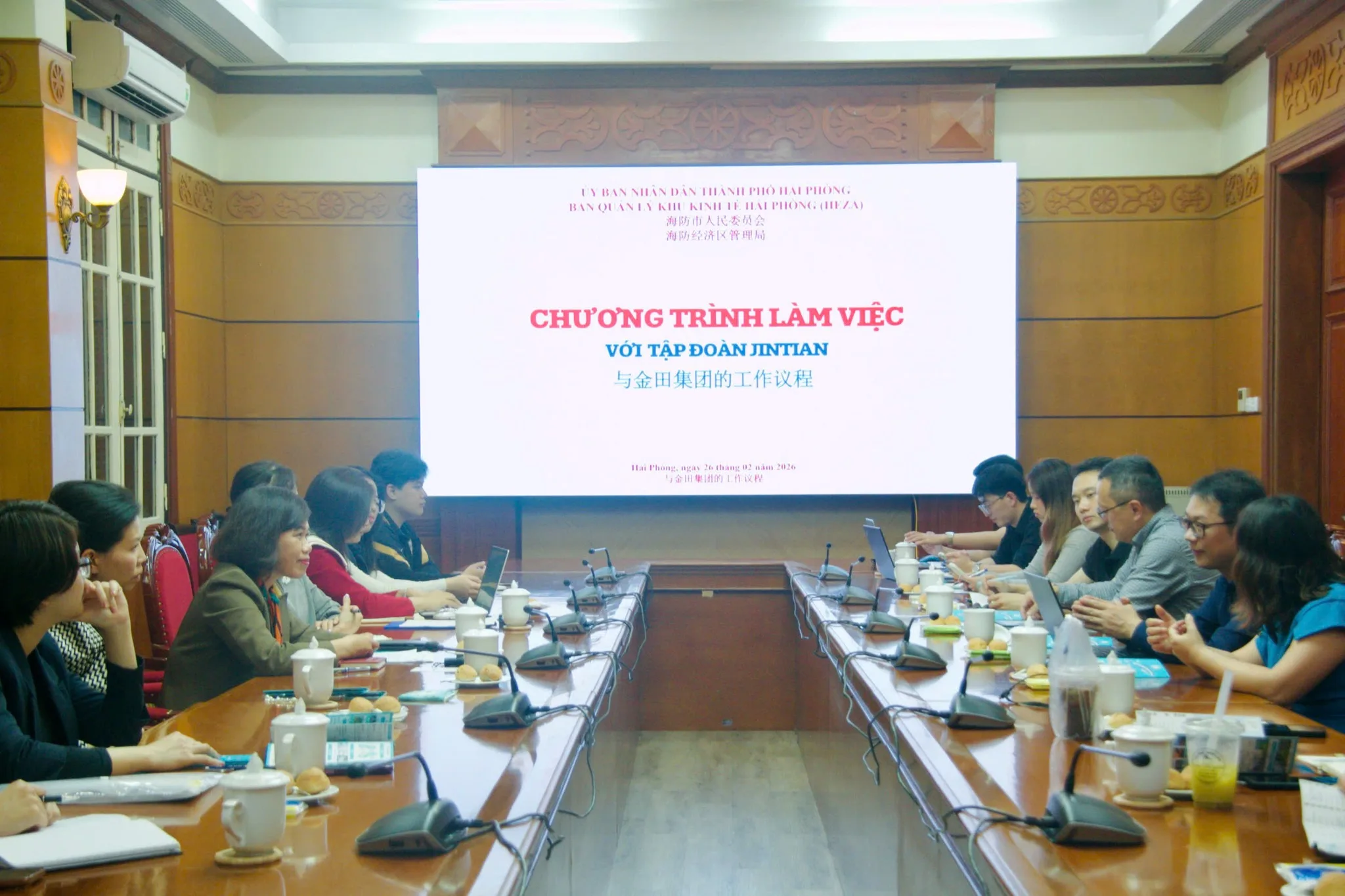 Ngày 26/02/2026, Ban Quản lý Khu kinh tế tổ chức buổi làm việc với Công ty CP Đại An và Tập đoàn Jintian về môi trường đầu tư tại thành phố Hải Phòng.