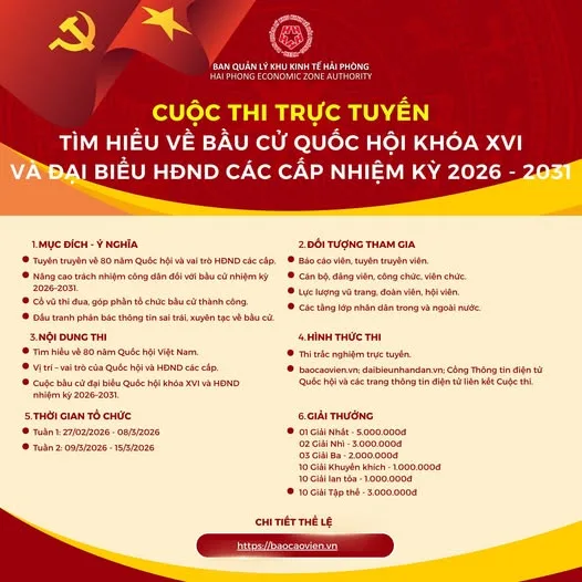 Thực hiện Chỉ thị số 46-CT/TW ngày 16/5/2025 của Bộ Chính trị và Hướng dẫn số 27-HD/BTGDVTW ngày 11/9/2025 về tuyên truyền cuộc bầu cử đại biểu Quốc hội khóa XVI và đại biểu Hội đồng nhân dân các cấp nhiệm kỳ 2026 – 2031, Ban Tuyên giáo và Dân vận Trung ương phối hợp với Đảng ủy Quốc hội tổ chức Cuộc thi trực tuyến tìm hiểu bầu cử Quốc hội và Hội đồng nhân dân các cấp.