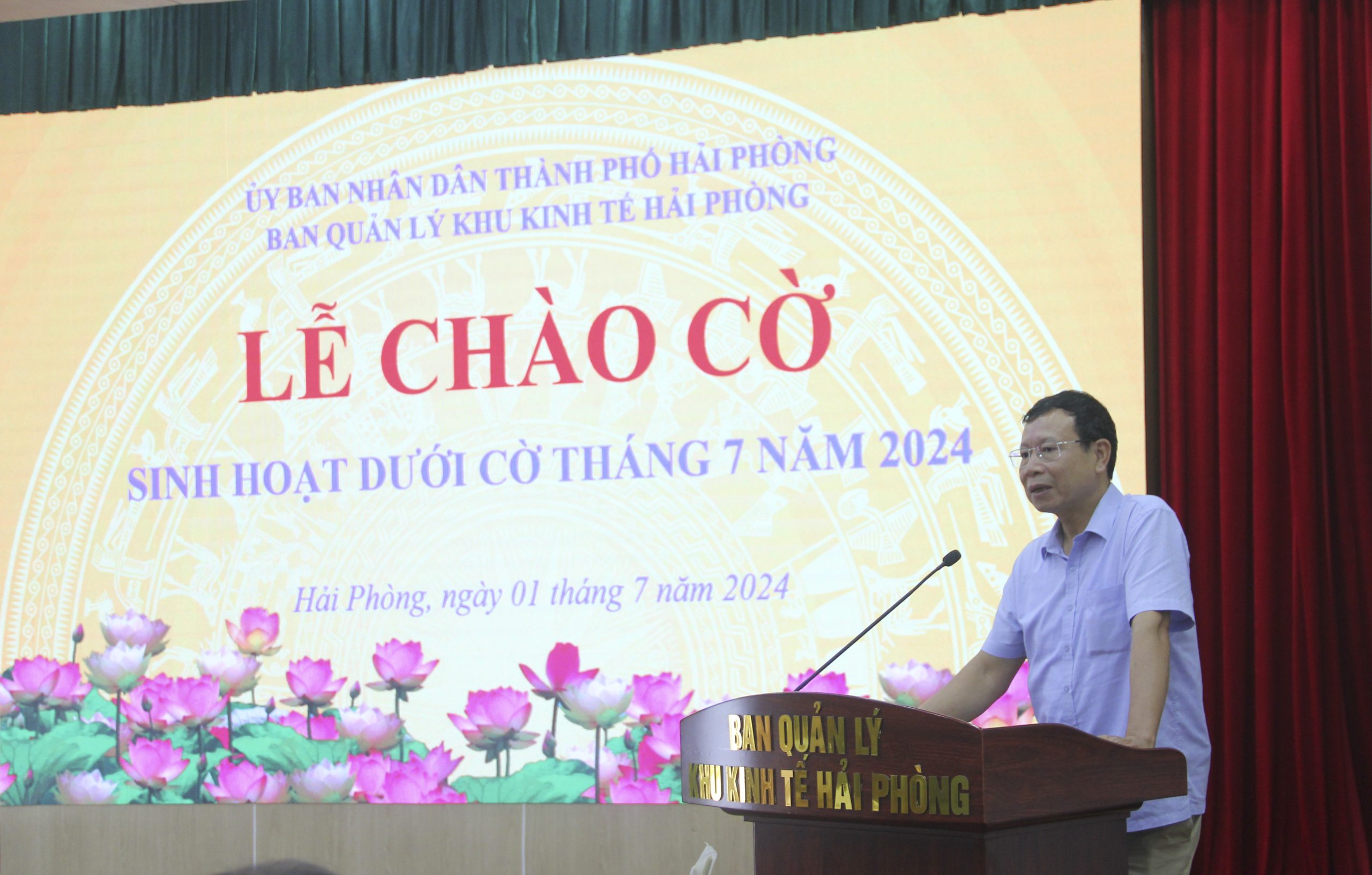 Sáng ngày 1 tháng 7 năm 2024, Ban Quản lý Khu Kinh tế Hải Phòng đã tổ chức buổi lễ chào cờ và sinh hoạt dưới cờ tháng 7/2024 với sự tham gia của các lãnh đạo Ban quản lý và toàn thể cán bộ, công nhân viên. Đây là dịp để Ban cùng nhìn lại những thành tựu đã đạt được trong những tháng qua và đề ra phương hướng, nhiệm vụ cho thời gian tới.