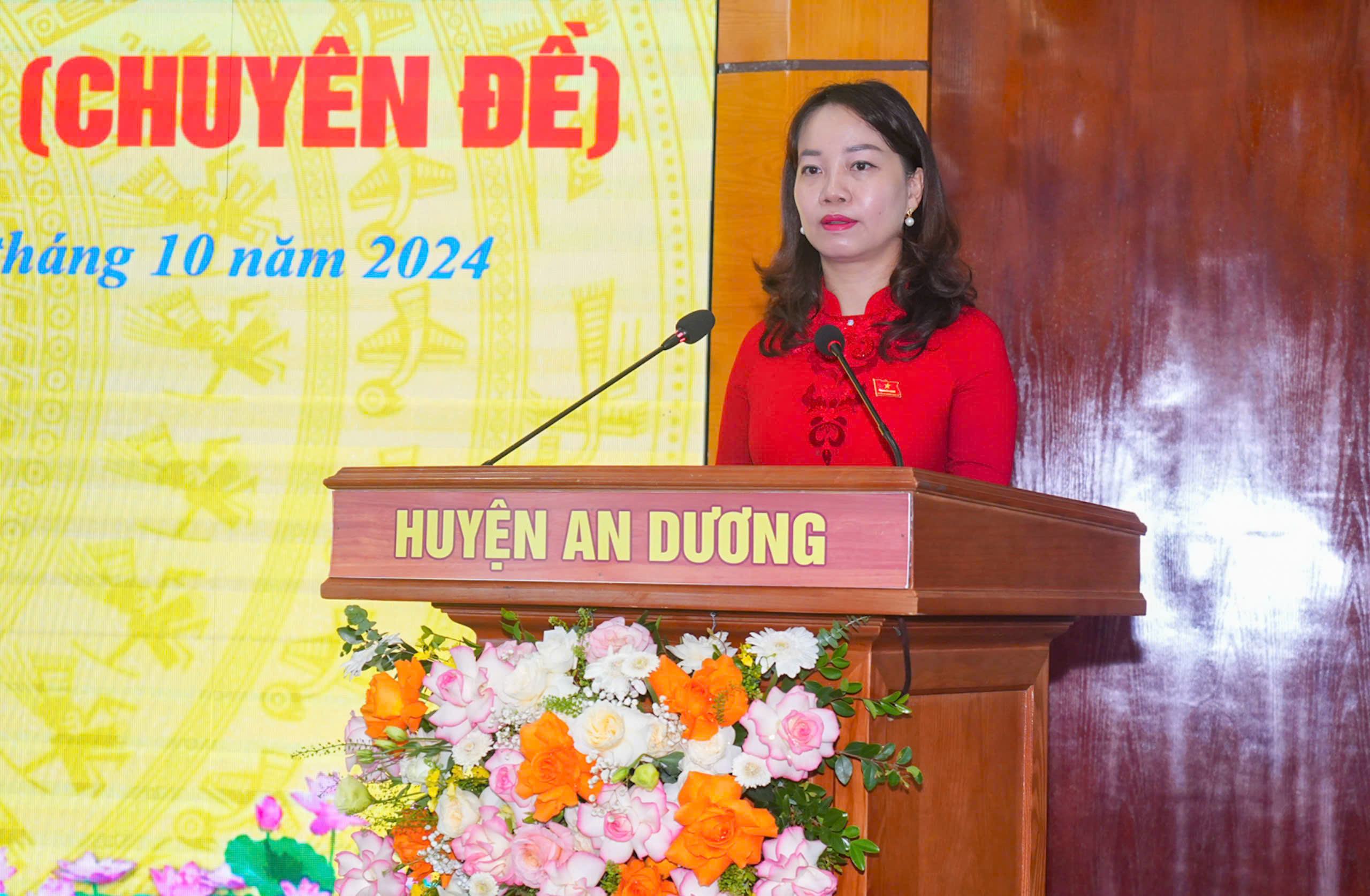 Phát biểu tại Hội nghị, đồng chí Trần Thị Quỳnh Trang, Bí thư Huyện ủy ghi nhận đồng chí Phạm Việt Hùng với cương vị nguyên là Phó Bí thư, Chủ tịch UBND huyện An Dương trong thời gian từ tháng 02/2021 đến tháng 10/2024 với bản lĩnh, trí tuệ và lòng nhiệt thành của mình đã đồng hành, sát cánh cùng tập thể lãnh đạo Huyện ủy, HĐND, UBND huyện lãnh đạo, chỉ đạo các cơ quan, đơn vị, địa phương trên địa bàn huyện đạt được những “mốc son”, những thành quả phát triển toàn diện về kinh tế – xã hội – quốc phòng – an ninh – văn hóa.