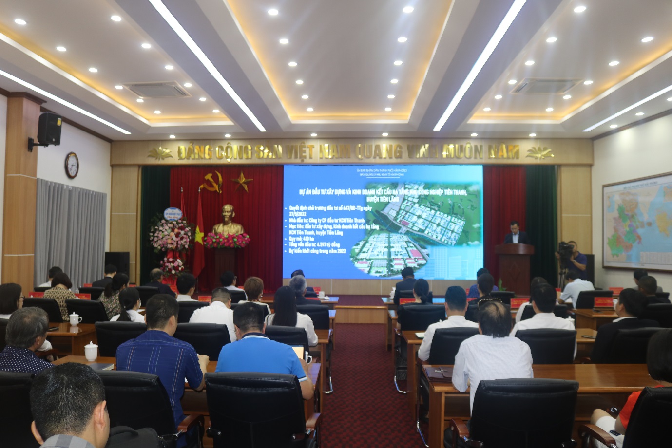 Tại Hội nghị, ông Lê Trung Kiên – Ủy viên Ban Thường vụ Thành ủy, Trưởng Ban Quản lý Khu Kinh tế Hải Phòng đã trao Giấy chứng nhận đăng ký đầu tư cho dự án đầu tư xây dựng và kinh doanh kết cấu hạ tầng Khu công nghiệp Tiên Thanh (huyện Tiên Lãng). Dự án đầu tư xây dựng và kinh doanh cơ sở hạ tầng KCN Tiên Thanh, huyện Tiên Lãng do Công ty Cổ phần Khu công nghiệp Tiên Thanh làm chủ đầu tư với tổng vốn đầu tư 4.597.460.000.000 đồng, quy mô 410 ha; nâng tổng số KCN đang hoạt động trên địa bàn thành phố lên 15 KCN với tổng diện tích đất tự nhiên là 6.074,75 ha, góp phần thực hiện Chương trình hành động số 76 về phát triển các KCN mới. Dự án đầu tư xây dựng và kinh doanh cơ sở hạ tầng KCN Tiên Thanh hoàn thiện góp phần tạo quỹ đất, mặt bằng sạch để thu hút các nhà đầu tư mới trong điều kiện tỷ lệ lấp đầy của các KCN trên địa bàn thành phố đều ở mức cao.
