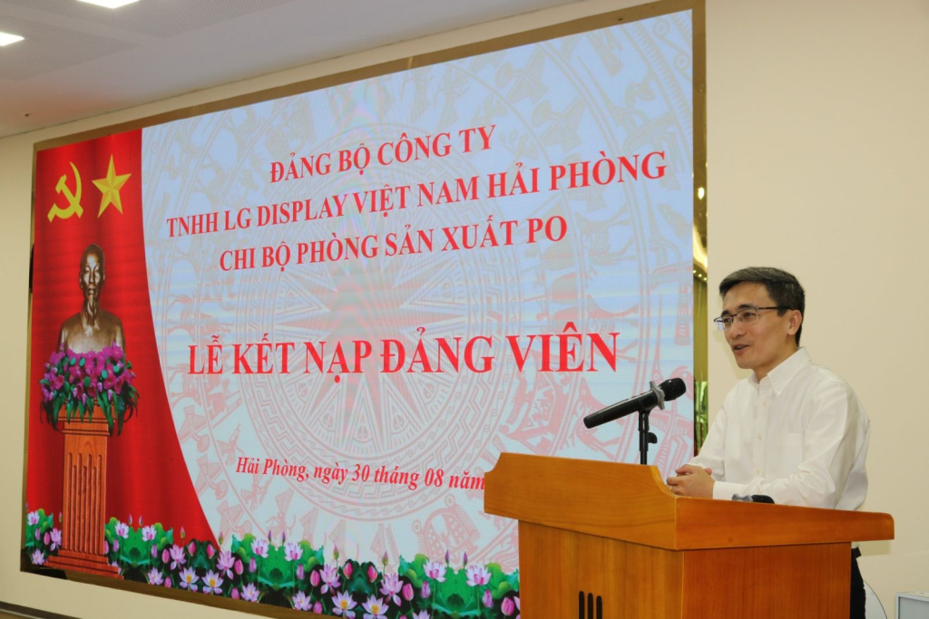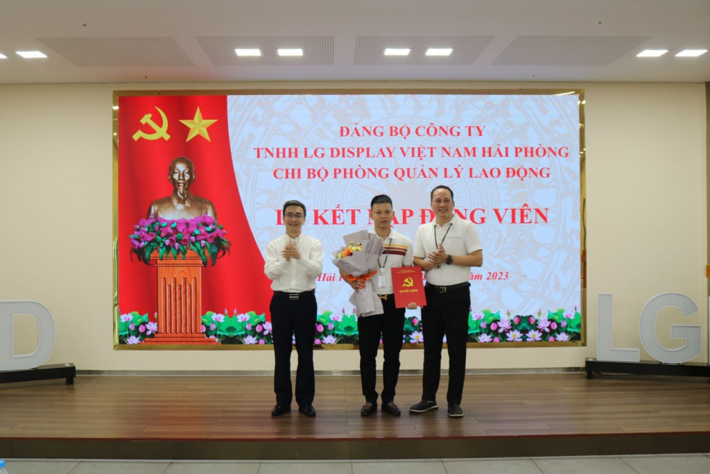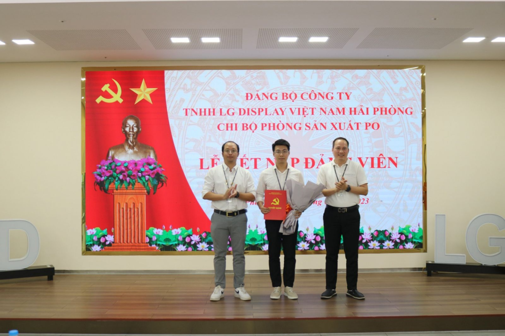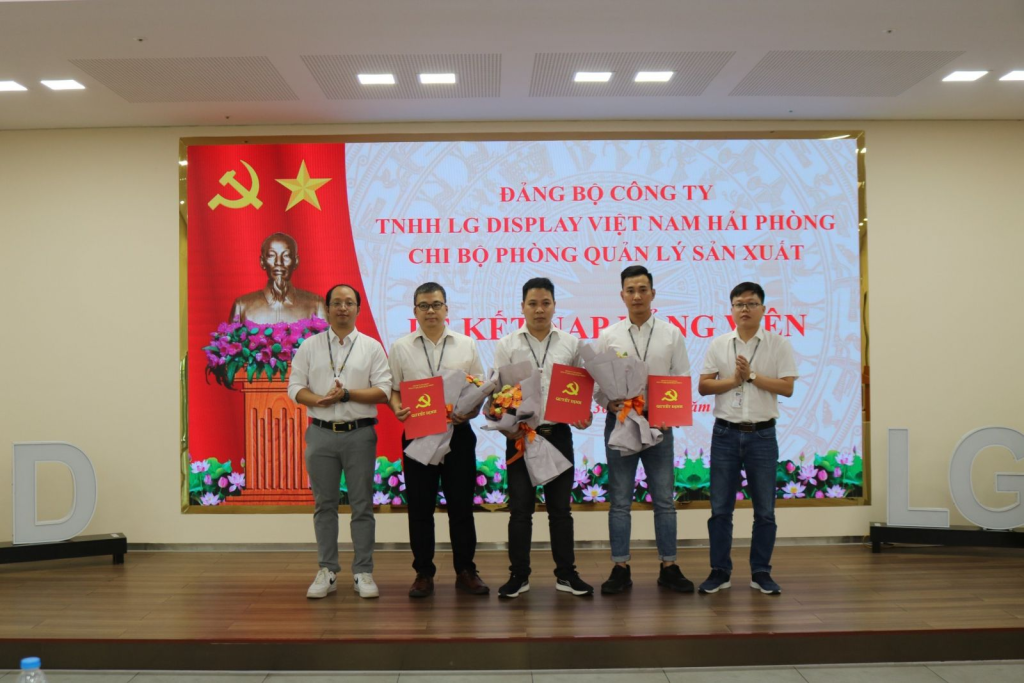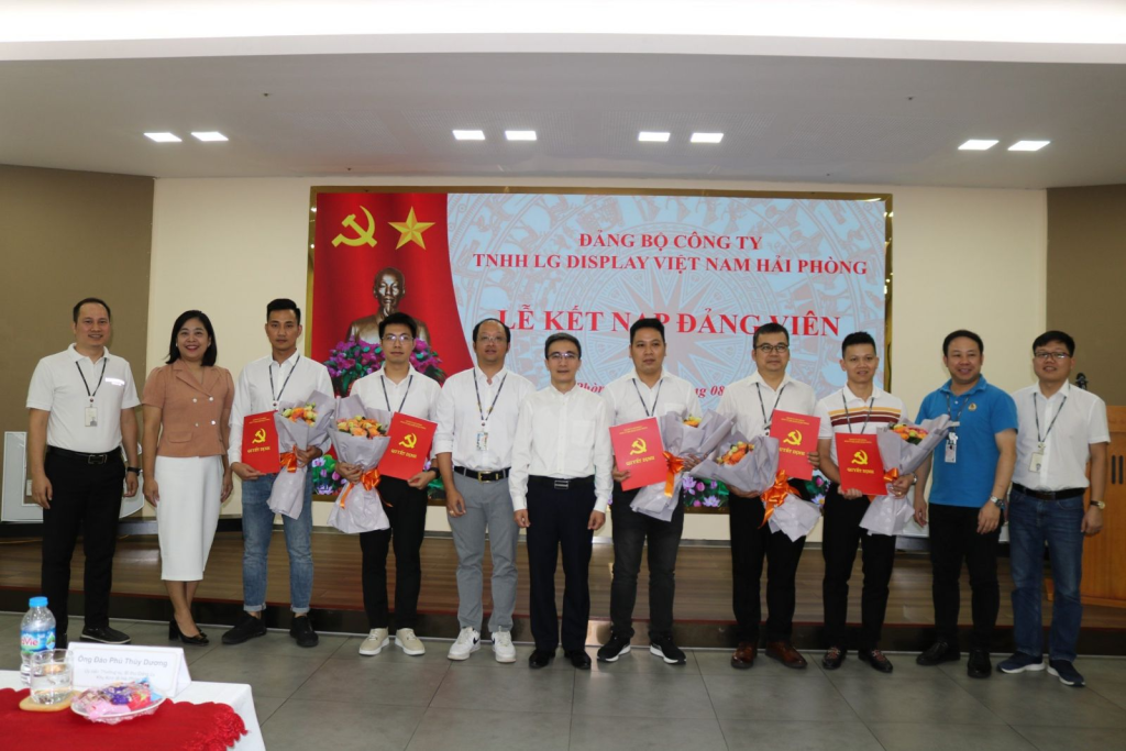 Tại lễ kết nạp cho các quần chúng ưu tú thuộc Đảng bộ Công ty TNHH LG Display Hải Phòng Việt Nam diễn ra vào chiều ngày 30/8/2023, 05 quần chúng ưu tú đã vinh dự được các đồng chí Bí thư các chi bộ trao quyết định kết nạp, thực hiện nghi thức tuyên thệ, thề tuyệt đối trung thành với mục đích lý tưởng cách mạng của Ðảng, chấp hành nghiêm chỉnh Cương lĩnh chính trị, điều lệ, nghị quyết, chỉ thị của Ðảng, pháp luật của Nhà nước. Đồng chí Đào Phú Thùy Dương, Ủy viên Thành ủy, Bí thư Đảng ủy Khu kinh tế dự và chỉ đạo buổi lễ kết nạp đã thay mặt Ban Thường vụ Đảng ủy chúc mừng và ghi nhận những nỗ lực, phấn đấu của các đồng chí Đảng viên vừa mới kết nạp đồng thời đề nghị các Chi bộ tiếp tục bồi dưỡng, phân công đảng viên giúp đỡ các đồng chí Đảng viên mới vừa được kết nạp để sớm trở thành Đảng viên chính thức góp phần nâng cao năng lực lãnh đạo, sức chiến đấu của Chi bộ Đảng trong doanh nghiệp có vốn đầu tư nước ngoài. Đồng chí đề nghị các đảng viên mới không ngừng nỗ lực phấn đấu, trau dồi phẩm chất đạo đức, chuyên môn nghiệp vụ, góp phần quan trọng vào sự phát triển của Công ty nói riêng và thành phố nói chung; là cầu nối giúp doanh nghiệp nắm bắt và thực hiện tốt chủ trương, đường lối của Đảng, chính sách pháp luật của Nhà nước.