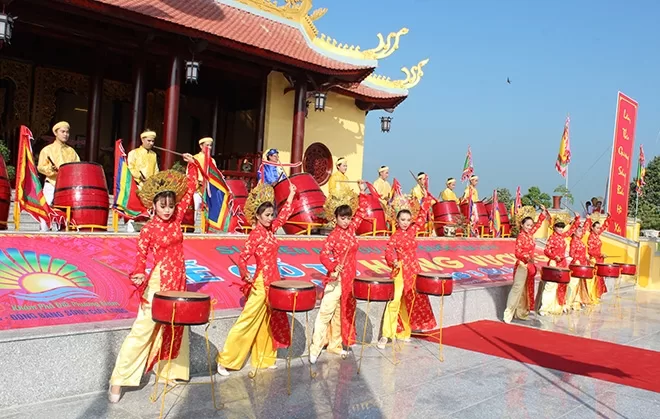 Văn nghệ chào mừng tại Lễ hội Giổ Tổ Hùng Vương năm 2023 tại Đền thờ Hùng Vương, thị trấn Phan Rí Cửa, huyện Tuy Phong. (Ảnh: Tư liệu)